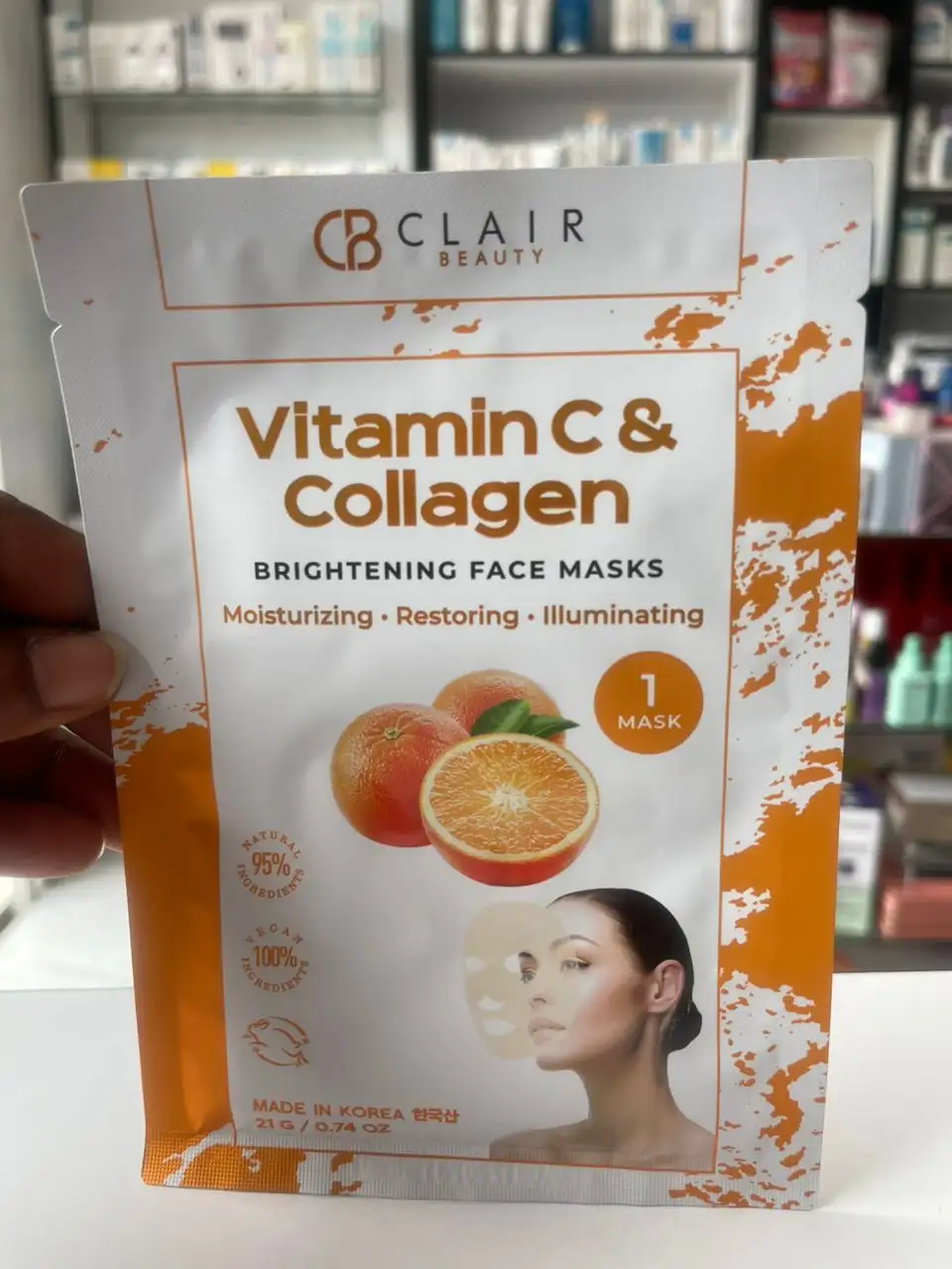 Home Sheet Mask Clair Beauty Vitamin C & Collagen Brightening Face Mask